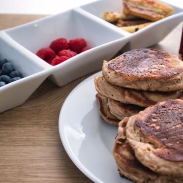 Normalerweise essen wir zum Frühstück Porridge oder Quark mit Granola und Obst. Aber manchmal möchten wir auch etwas anderes essen. Sonntags entscheiden wir uns gerne für ein paar gesunde Pfannkuchen. …
