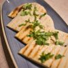 - Währenddessen das marinierte Hühnchen auf Grillspieße verteilen und bei 200°C Grill für etwa 20 Minuten im Ofen durchgaren. Nach 10 Minuten das Hühnchen wenden.