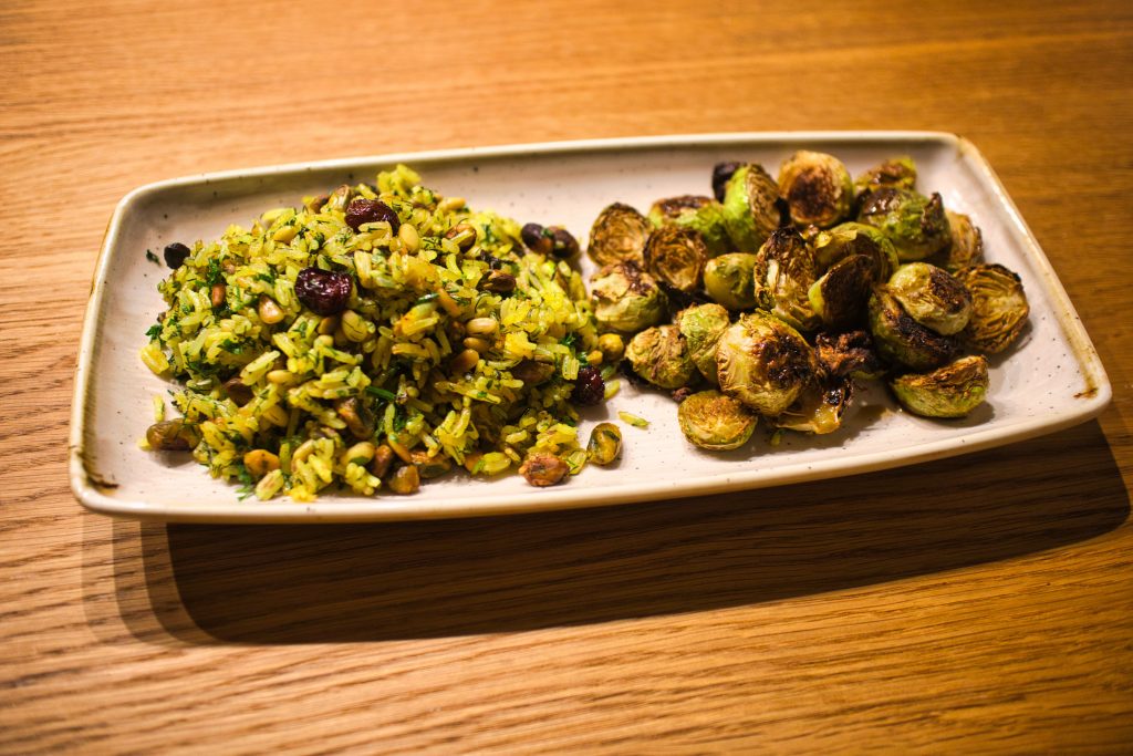 Röstrosenkohl mit fruchtigem Kräuterreis