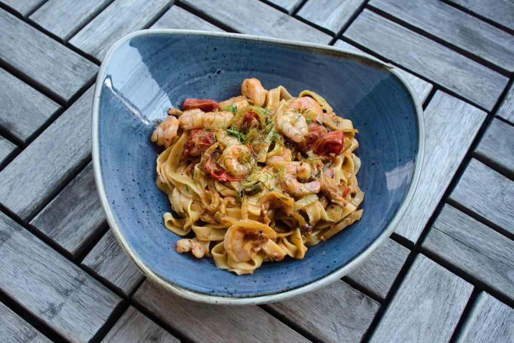 Die­ses Nudel­ge­richt haben wir erst vor ein paar Mona­ten bei CAL­LE­kocht* ent­deckt und kochen es seit­dem regel­mä­ßig nach. Ich lie­be ja Nudeln mit Gar­ne­len und die­se Vari­an­te mit der sah­ni­gen Safran­sauce ist ein­fach mega lecker. Der Fen­chel ergänzt dabei das Gericht nicht nur opti­mal, son­dern wirkt auch krampf­lö­send und ist reich an Vit­ami­nen. Da die­ses Gericht sehr schnell fer­tig ist (zumin­dest wenn man gekauf­te Nudeln ver­wen­det), ist es opti­mal für die schnel­le Fei­er­abend­kü­che geeignet.