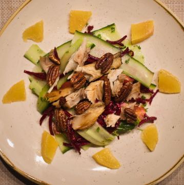 Rote Bete-Gurken-Salat mit geräucherter Makrele