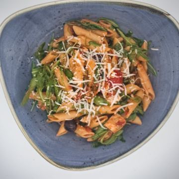 Penne mit Thunfisch, Oliven und Rucola