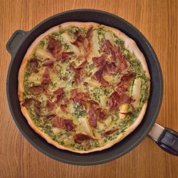Spargel-Bärlauch-Tarte mit Serrano-Schinken