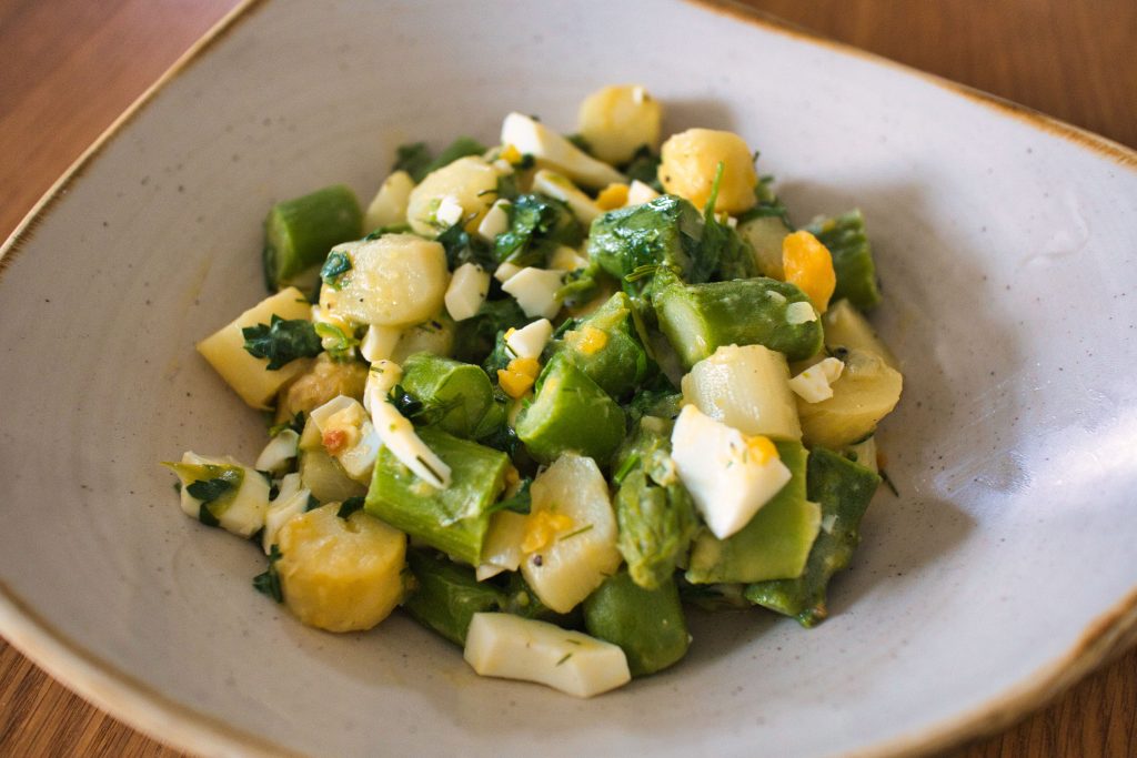 Wir haben bestimmt schon das ein oder andere Mal erwähnt, dass wir Spargel lieben und wir uns wünschen würden, er hatte das ganze Jahr über Saison. Aber leider ist dies ja nicht der Fall, sodass wir während der Spargelsaison bestimmt zwei bis dreimal die Woche Spargel essen. Heute wollen wir euch unseren liebsten Spargelsalat zeigen, der bei uns regelmäßig mittags (und manchmal auch abends) serviert wird. Das Rezept haben wir in Alfons Schuhbecks Kochbuch “Meine FC Bayern Fitness Küche” entdeckt und nur minimal verändert, weil es einfach so wie es ist super lecker ist. Unser Tipp: Ein paar Scheiben Sauerteigbrot sollten bei diesem Rezept nicht fehlen.