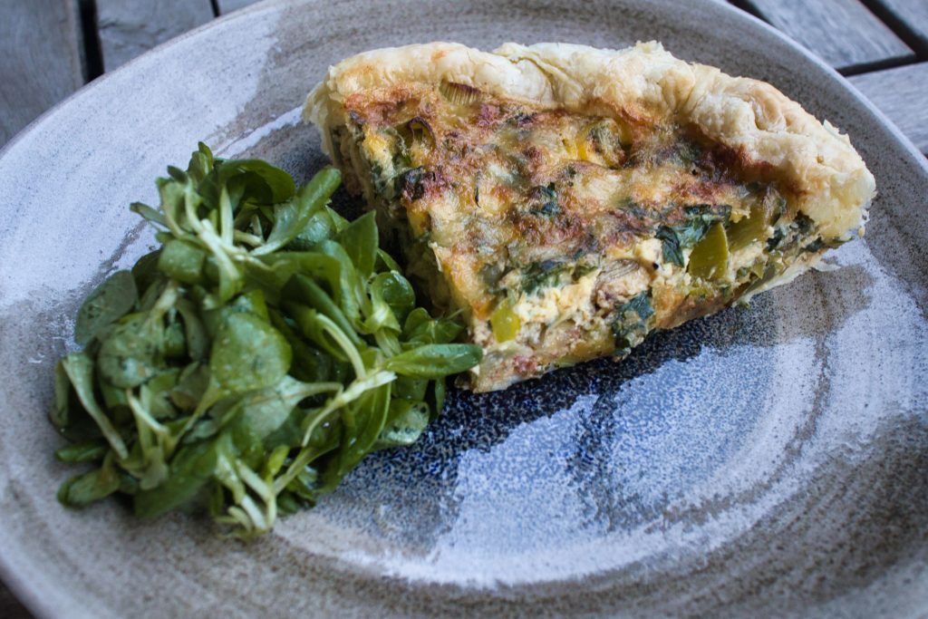 - Die Quiche mit einem kleinen Salat lauwarm servieren.
